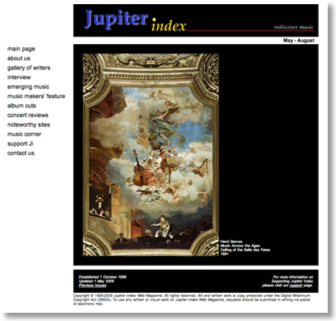 As a non-profit organization based in Austin, Texas, which is known as the live music capital of the world, our goal has been to not only offer help to a new crop of writers as we move from issue to issue and year to year, but also provide a place on the World Wide Web where music lovers can go to experience a fresh take on music. Call it the Jupiter Index difference.