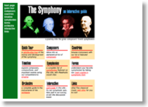 Simplicity can say so much. That’s how The Symphony: An Interactive Guide works. Part of the free academic-based platform ThinkQuest, the guide starts with a quick tour of the history of the symphony before branching out to specific categories which include the composers, their symphonies, orchestras, a link to other classical Web pages and a timeline. A handy guide for all classical music-minded listeners who prefer simplicity in their lives.